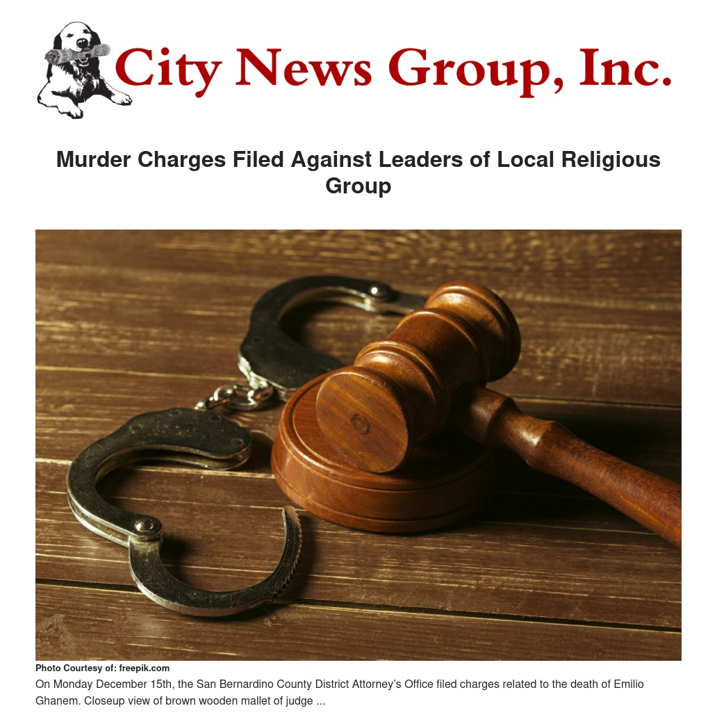 Murder Charges Filed Against Leaders of Local Religious Group by William Cortez - City News Group, Inc.
