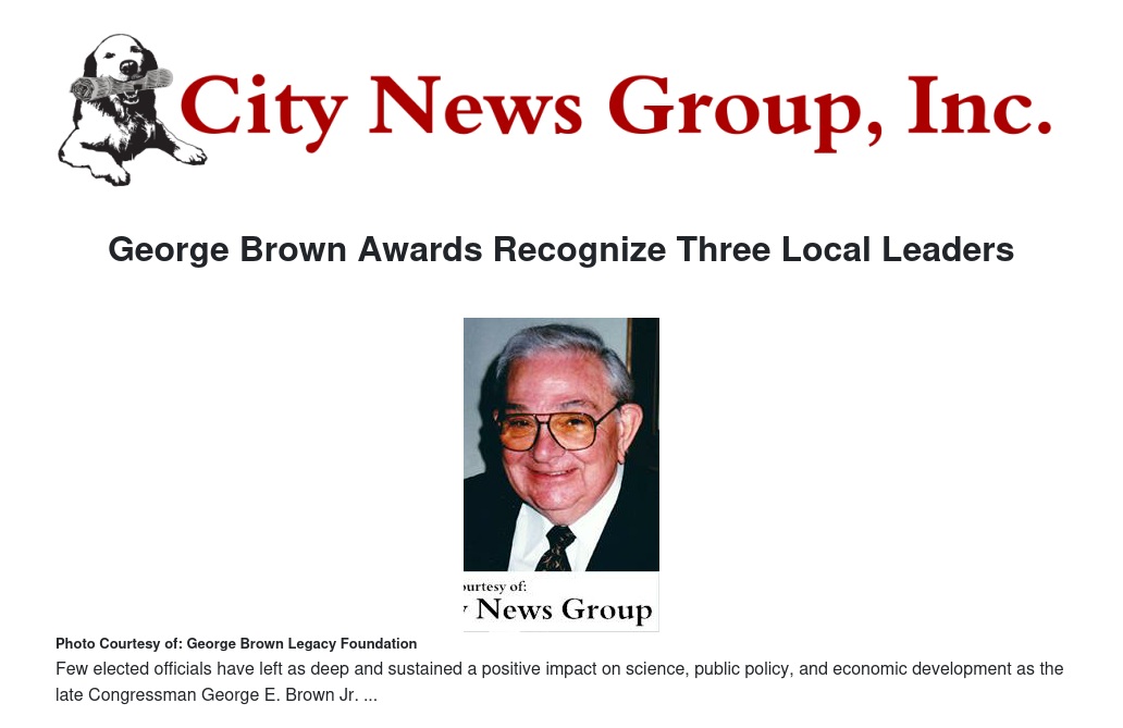 “Few elected officials have left as deep and sustained a positive impact on science, public policy, and economic development as the late Congressman George E. Brown Jr. Even those who didn't know him have felt their lives touched by his legacy of service, leadership, innovation, and opportunity,” said Johnson.