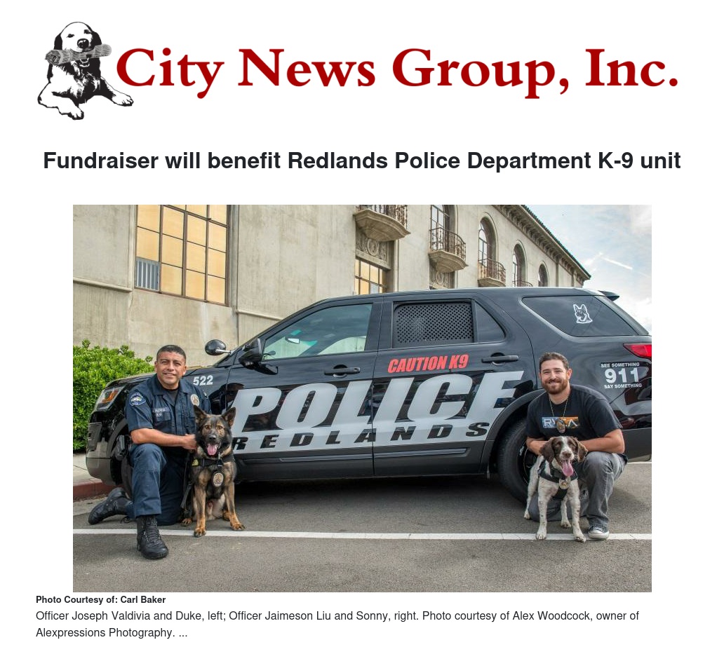 Proceeds from the event will go to support the Redlands Police Department K-9 Unit.