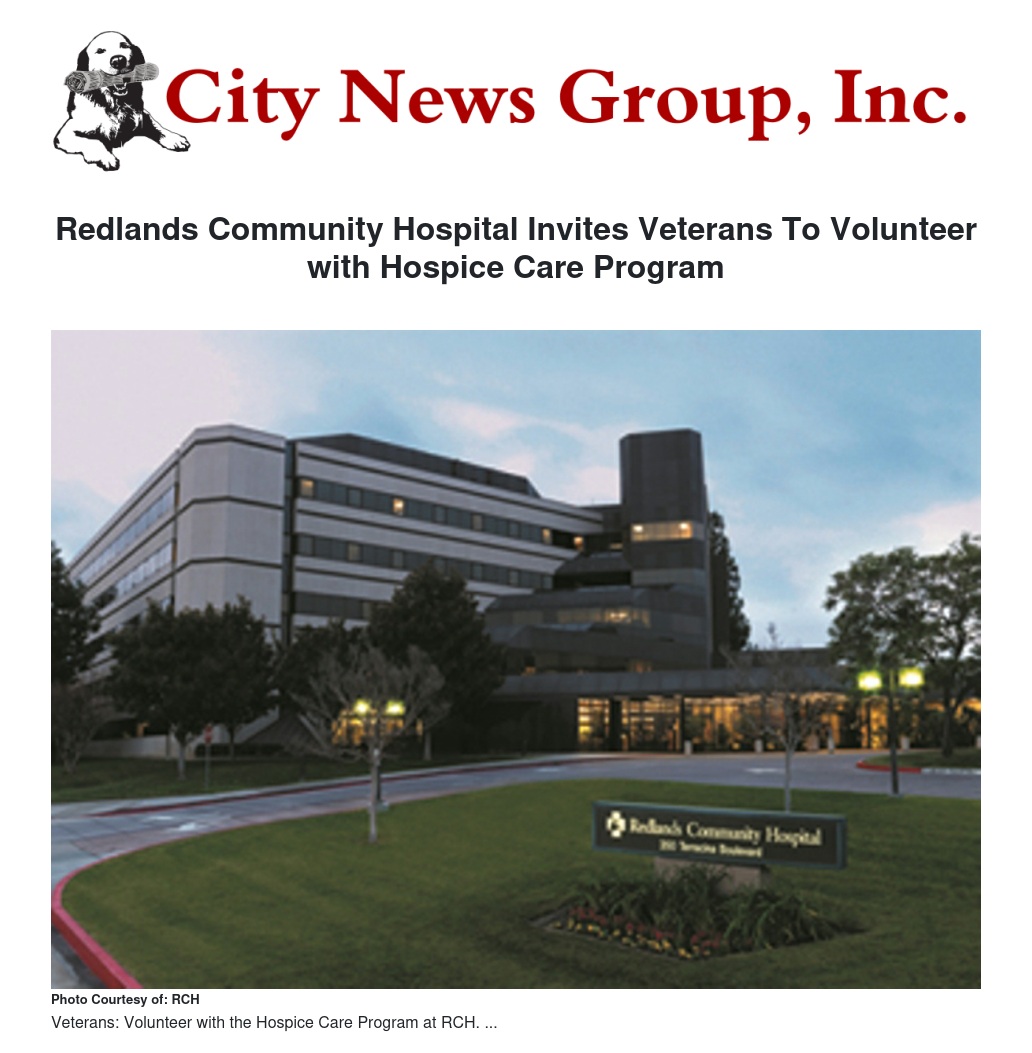 Redlands Community Hospital (RCH) is inviting veterans to join their dedicated volunteer program to provide end-of-life care to other veterans and seniors in hospice.