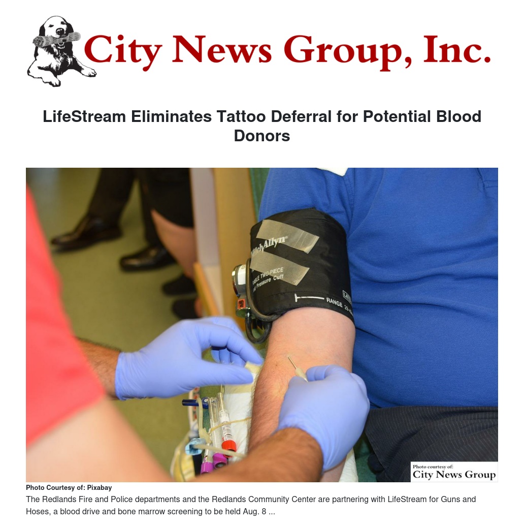 LifeStream blood bank is altering its policy that currently defers potential blood donors with a tattoo for one year from the date of the most recent inking.