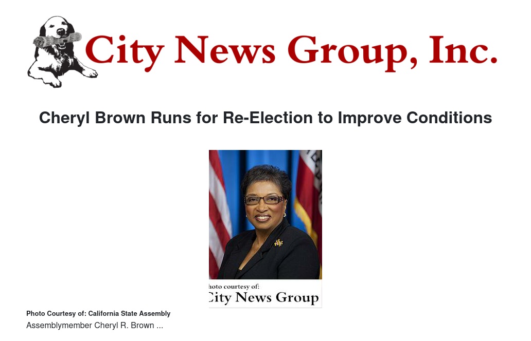 Assemblymember Cheryl R. Brown (D-San Bernardino) announced that she will seek a third term to represent California’s 47th Assembly District.
