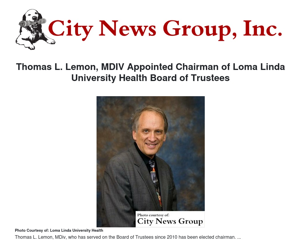 Thomas L. Lemon, MDIV Appointed Chairman of Loma Linda University Health Board of Trustees
