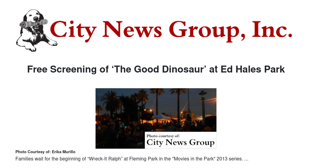 Free Screening of ‘The Good Dinosaur’ at Ed Hales Park