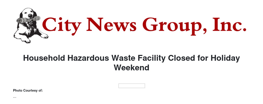 Household Hazardous Waste Facility Closed for Holiday Weekend