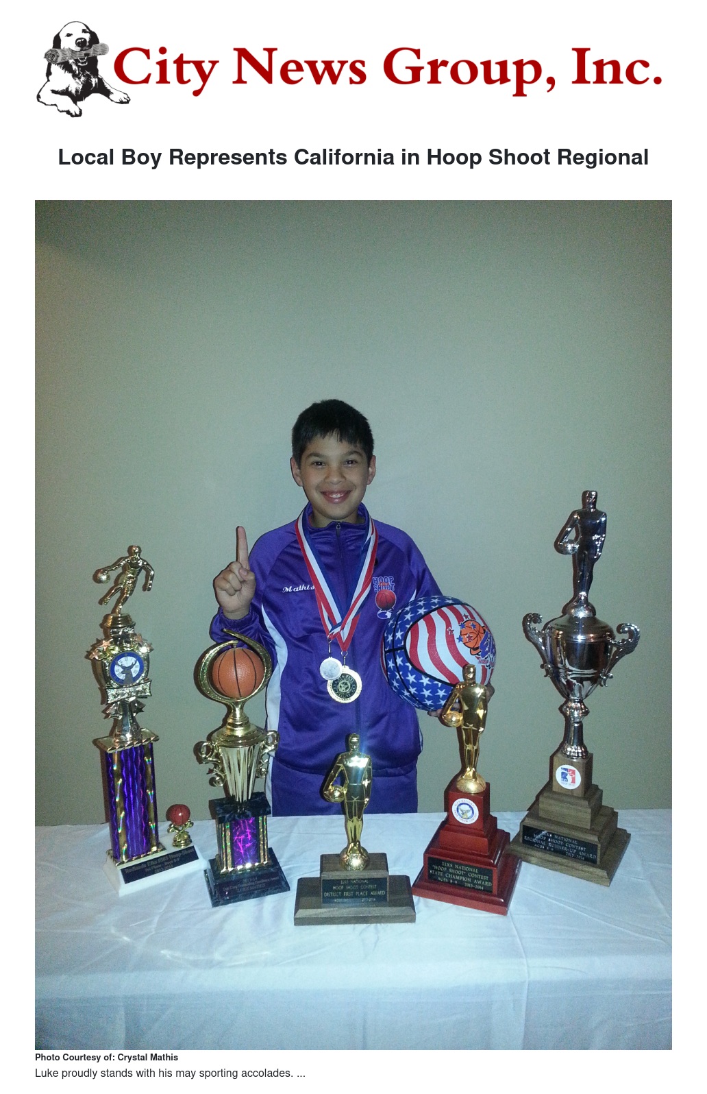 Redlands native Luke Mathis, 9, has made his parents, city, and state proud after his recent participation in the Hoop Shoot Western Regionals in late Feb. in Las Vegas, NV. The basketball savvy 9-year-old shot his way to second place, just one shot behind the regional champion who made 22 baskets out of 25.