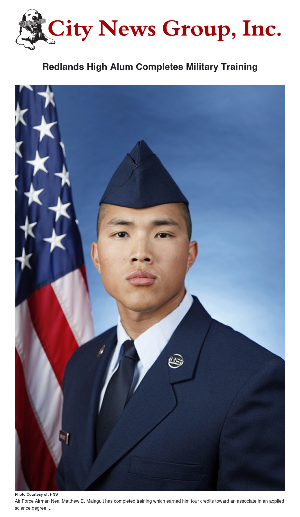 Air Force Airman Neal Matthew E. Malaguit graduated from basic military training at Joint Base San Antonio-Lackland, San Antonio, Texas.