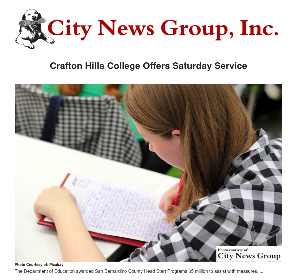 REDLANDS>> Crafton Hills College will be offering assessment and advising services on Saturday, Dec. 3 for people interested in registering for spring semester 2017. As an incentive to participate, those who complete the process on Dec. 3 will be allowed to register for classes earlier than otherwise offered.