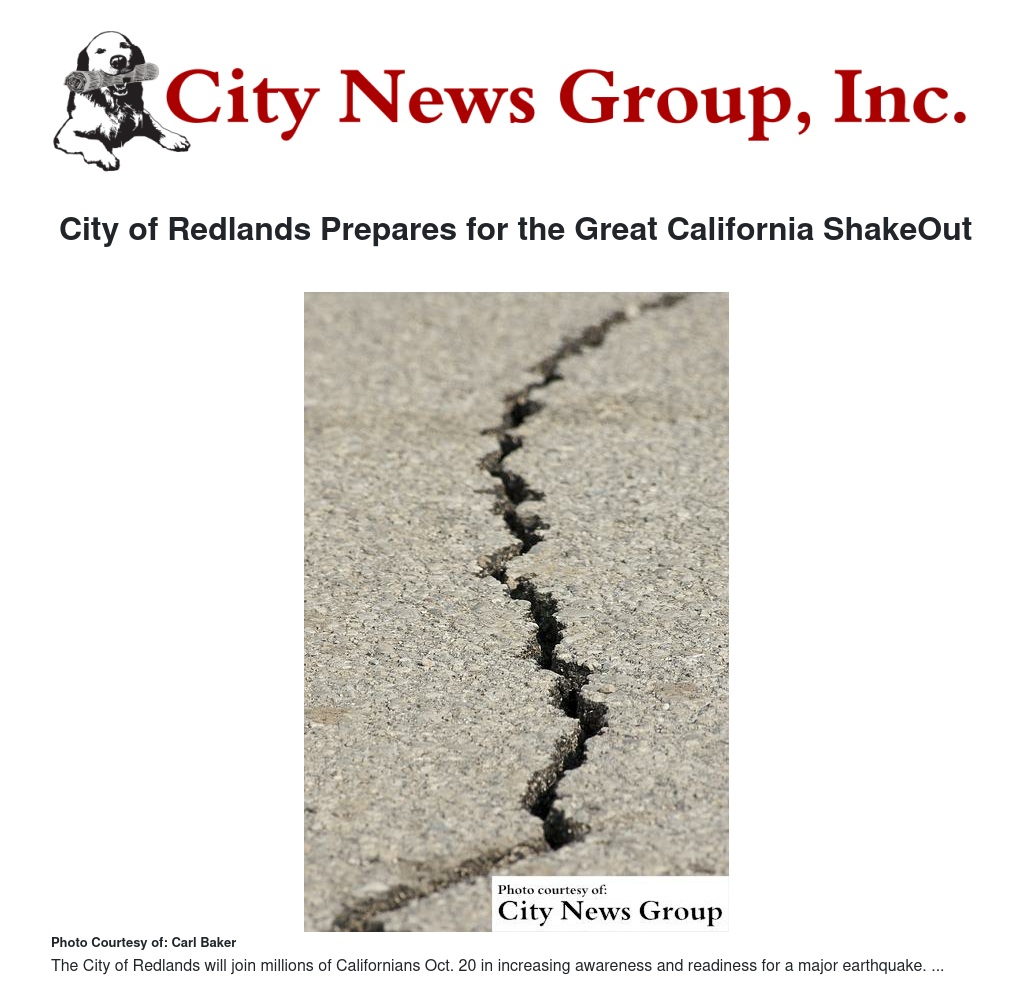 REDLANDS>> With more than 38 million people living and working in California, a major earthquake could cause unprecedented devastation. In an effort to prepare for an earthquake, the 2016 Great California ShakeOut earthquake drill will be held on Thursday, Oct. 20.