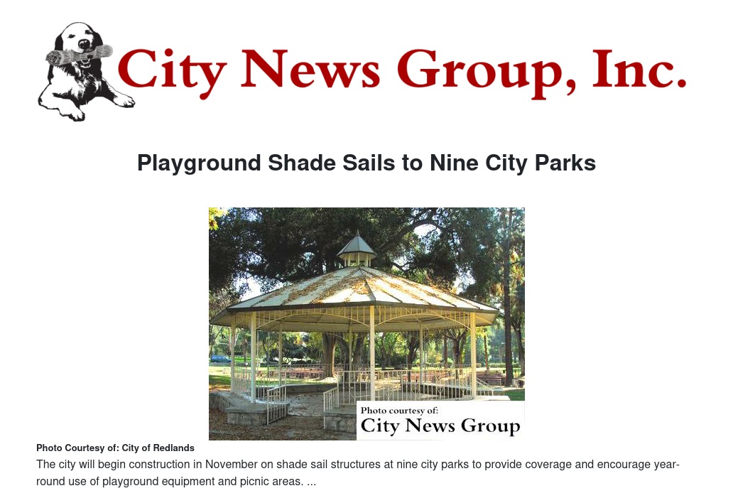On July 21, the City Council awarded a $238,410 contract for the 2015 Shade Sail Installation Project to Southern Hemisphere Shades of Sacramento.