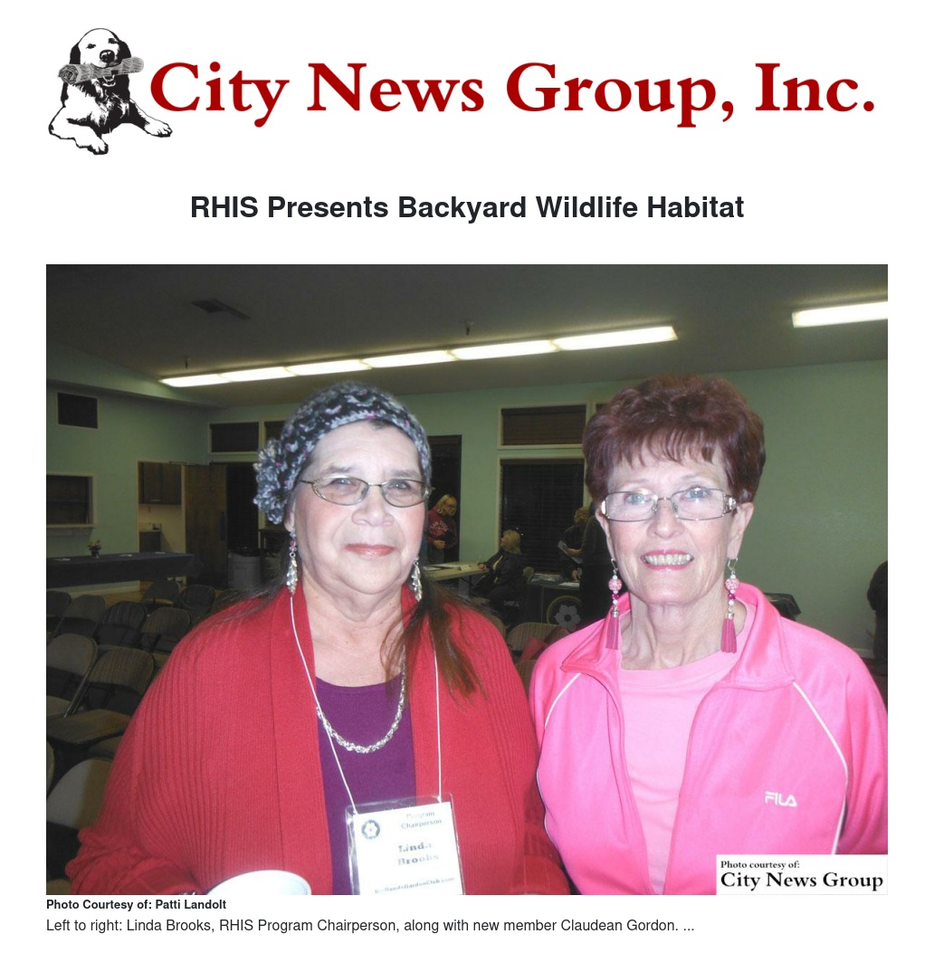 Redlands Horticulture and Improvement Society welcomed Professor of Natural Resources, Kurt Leuschner, from the College of the Desert in Palm Desert as their speaker for their January meeting. Backyard Wildlife Habitat was the subject of Leuschner’s presentation.