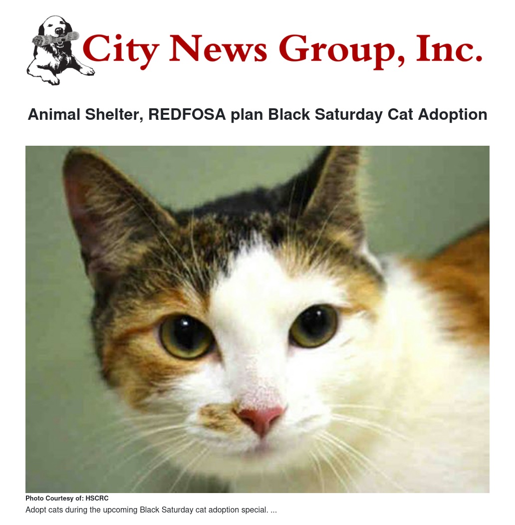 Animal Shelter, REDFOSA plan Black Saturday Cat Adoption
