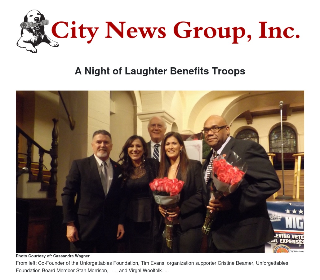 On Feb. 5 the Unforgettables Foundation hosted a "Night of Laughter" to benefit grieving Veterans and their families who are or have dealt with funeral expenses associated with the loss of a child.