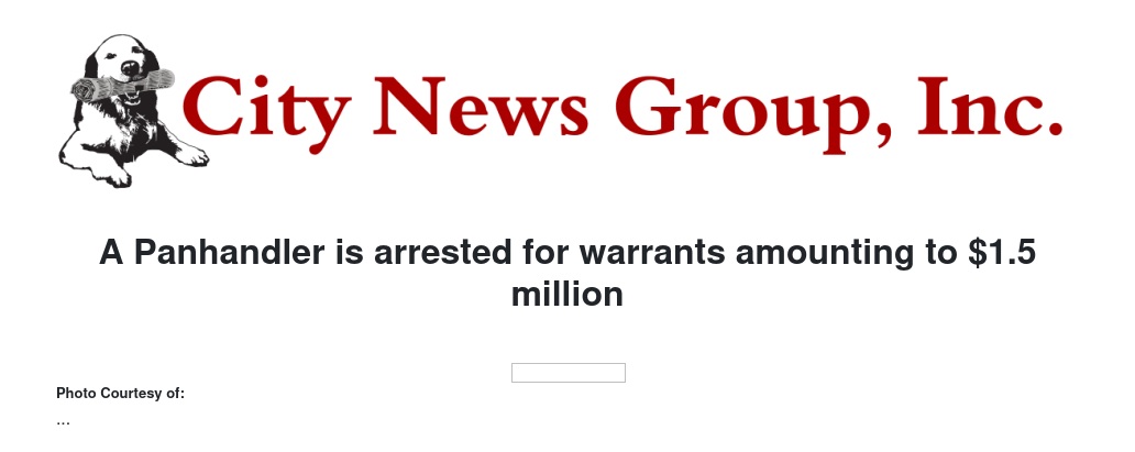 A Panhandler is arrested for warrants amounting to $1.5 million