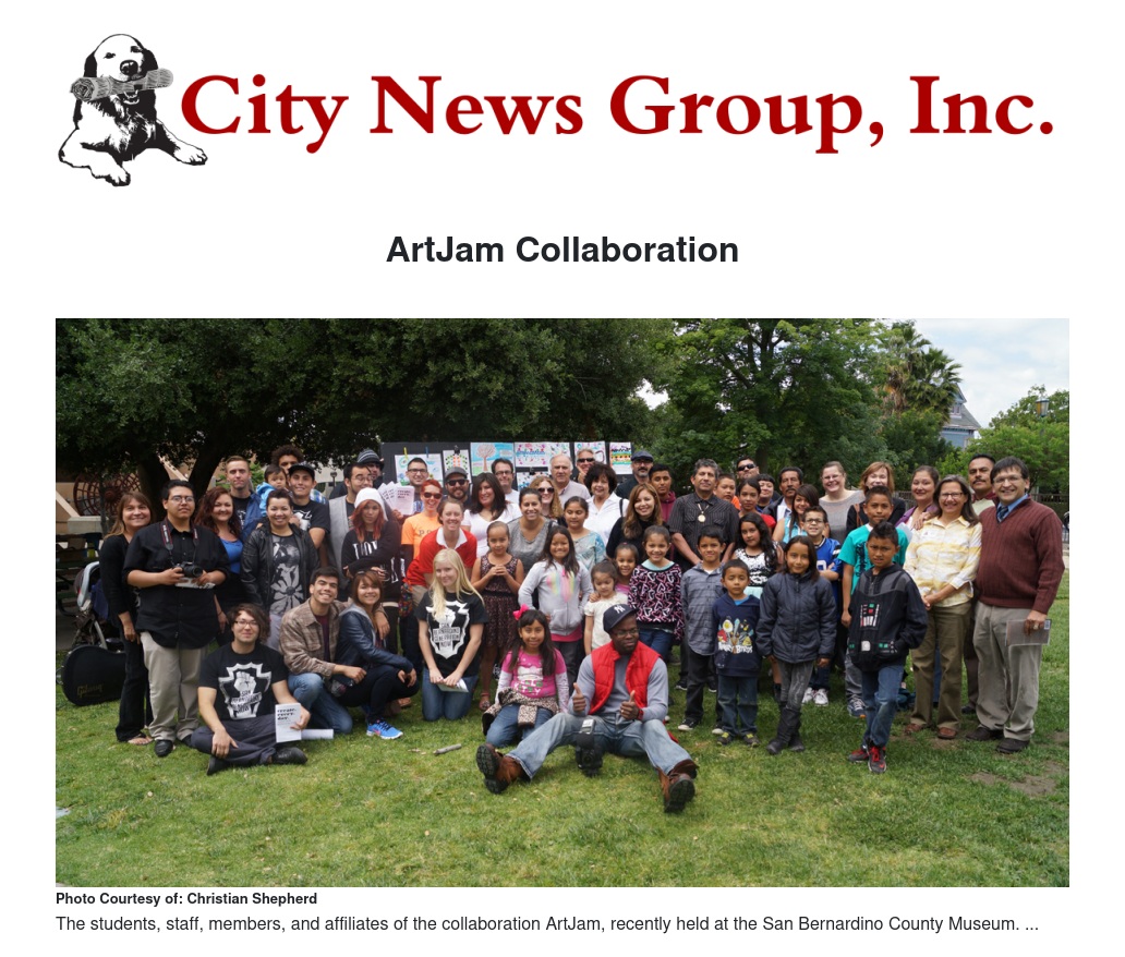 The event at the museum was done in collaboration between the SBCM, SCIPP (Students and Coyotes: Instructions for Poetry and Prose) from California State University San Bernardino, San Bernardino Generation Now (an activist group focusing on the improvement and unification of San Bernardino residents), and students from San Bernardino Valley College. The two-year ArtMUSE series was funded by the James Irvine Foundation.