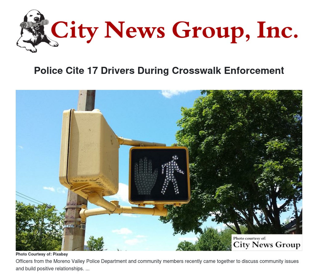 Police Cite 17 Drivers During Crosswalk Enforcement