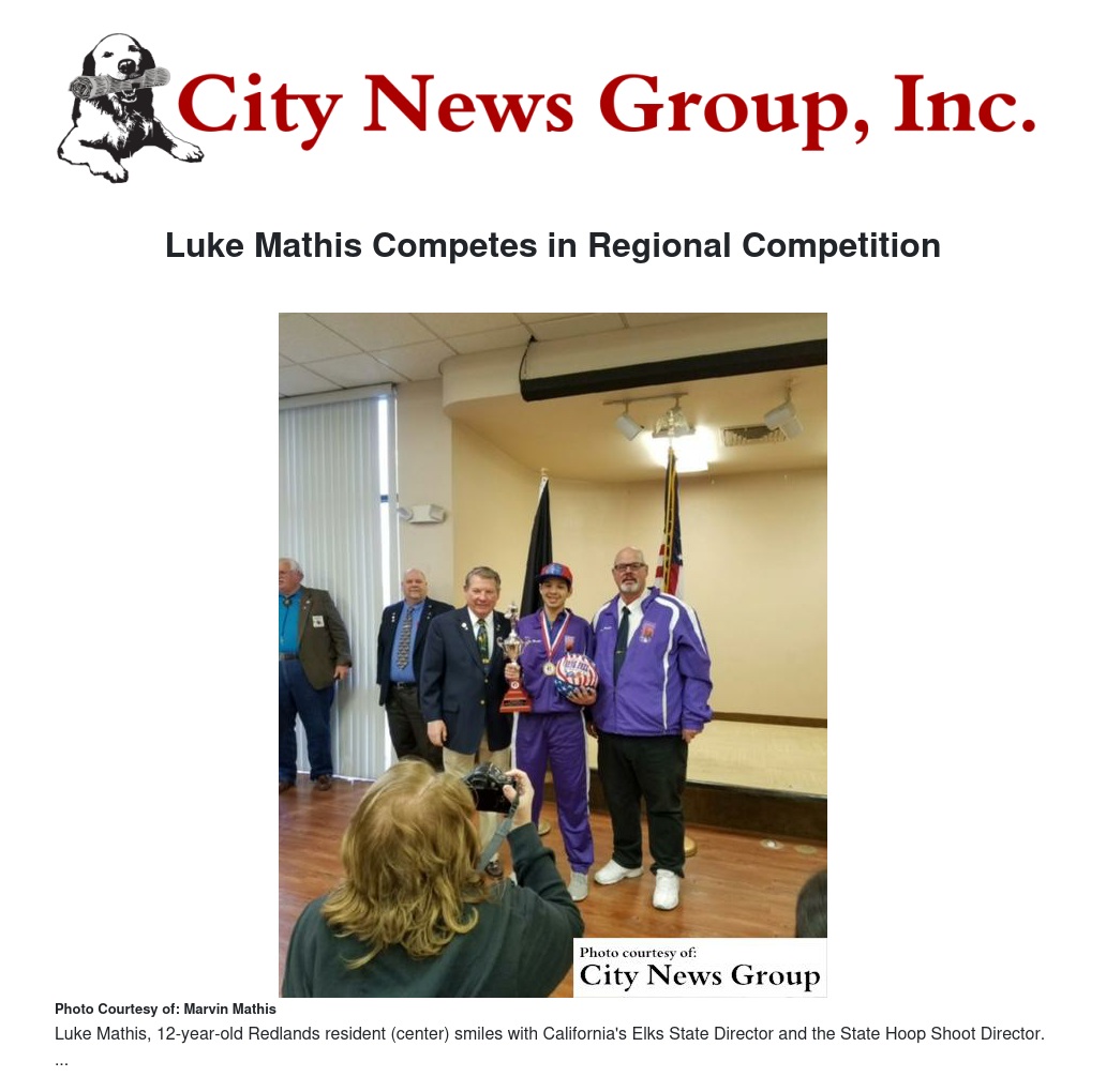 REDLANDS>> Luke Mathis, 12-year-old Redlands resident, competed in Regional Elks Hoop Shoot in Las Vegas, Nevada after winning the state title for the fourth year in a row.