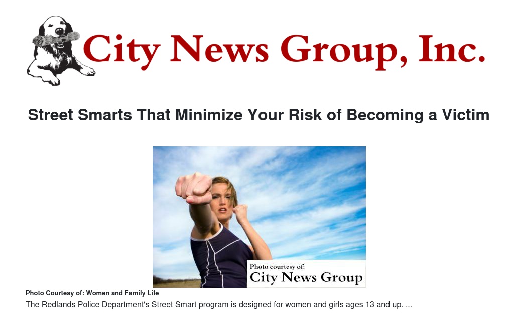 Space for the women’s self-defense and safety workshop is limited to the first 36 people registered. To register for either program call (909) 798-7572 or email personalsafety@redlandspolice.org. The Redlands Community Center is located at 111 W. Lugonia Ave. Visit Street Smart on Facebook at www.facebook.com/pages/Redlands-PD-Street-Smart-Self-Defense.