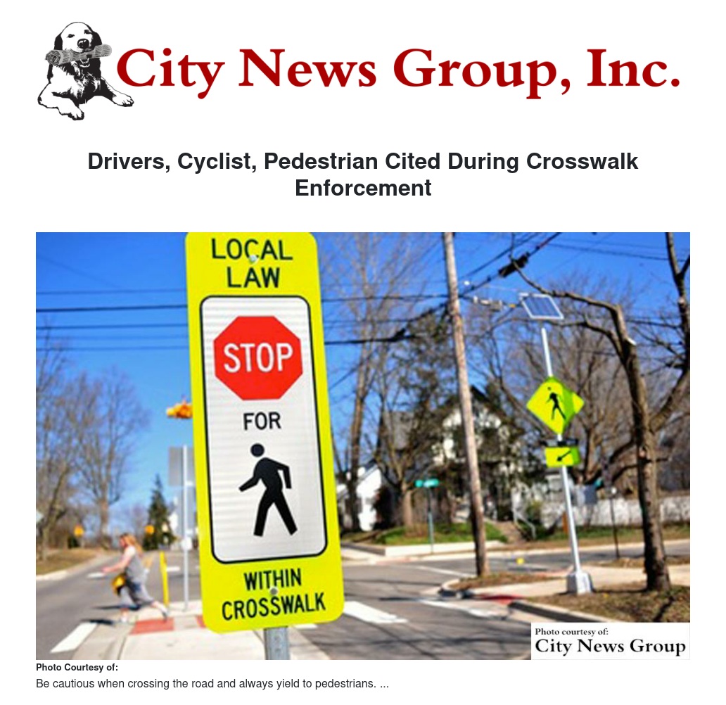 Drivers, Cyclist, Pedestrian Cited During Crosswalk Enforcement