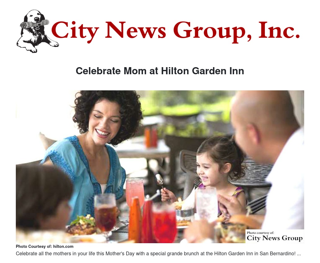 As part of this special upcoming celebration, the Hilton Garden Inn in San Bernardino invites families to say "I love you" this Mother's Day, Sunday, May 10, at the Hilton Garden Inn's Garden Grille Restaurant and enjoy a special Mother's Day brunch from 10 a.m. to 3 p.m. with a menu sure to satisfy your every sweet and savory craving.