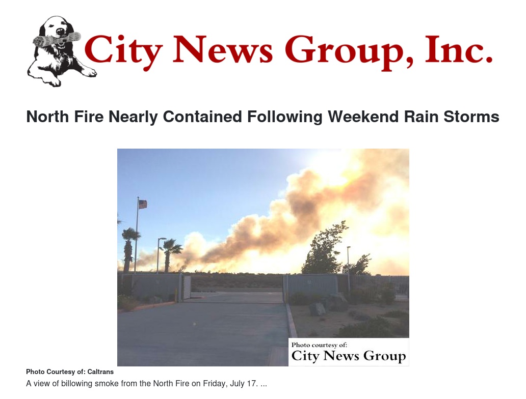 The North Fire started at about 2:33 pm on Friday, July 17 near Interstate 15 north of Highway 138. Interstate 15 has re-opened in both directions. Motorists traveling in the area are asked to please exercise extreme caution while traveling in the I-15 corridor due to emergency personnel and fire operations.