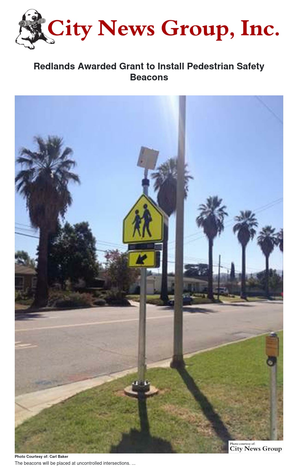 The City of Redlands has been awarded a $270,270 grant for the installation of pedestrian crosswalk beacons at eight locations primarily in the downtown area.