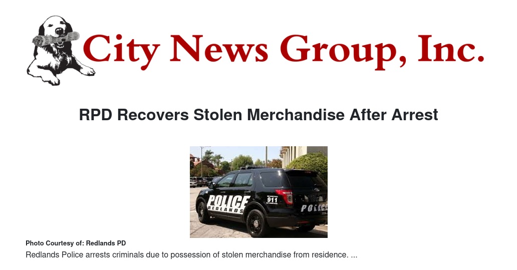 The investigation is continuing. Anyone with additional information is asked to contact Redlands Police Dispatch.