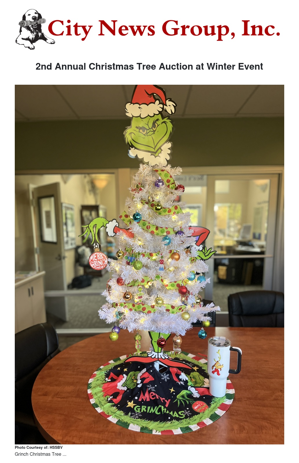 The HSSBV will be offering three one of a kind Christmas trees during a live auction at their Winter Wonderland Walk & Santa Paw Pet Photos event presented by San Manuel Band of Mission Indians on Saturday, November 23rd. The first tree is the Peanuts Tree, decorated with handmade Charlie Brown and Peanuts ornaments and includes two tickets to Knott’s Berry Farm! The second tree is the Gold Tree, featuring gorgeous gold ornaments and includes a basket of Golden Oreos and a Golden Doodle stuffed animal. The third and final tree is the Ginch Tree, featuring Grinch themed décor, the Grinch himself and a Grinch themed travel mug. The event is from 8:00 am – 12:30 pm, with the live auction taking place at 12:00 pm hosted by Jeff Pope from Hot 103.9.