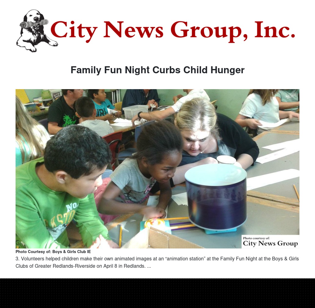 Local nonprofit Share Today Shape Tomorrow, food service company Sodexo and the University of Redlands organized a free community Family Fun Night at the Boys & Girls Clubs of Greater Redlands-Riverside on Wednesday, April 8.