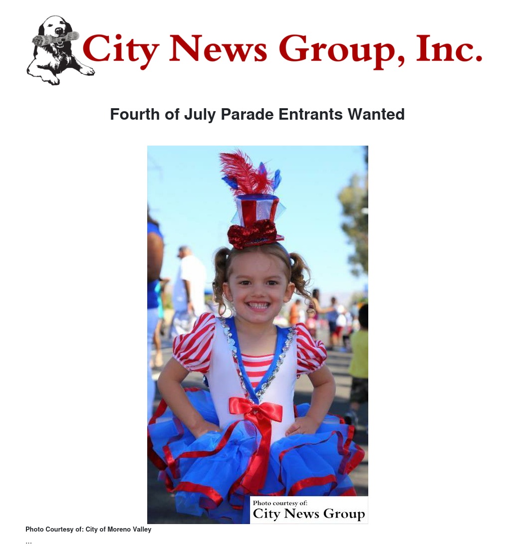 Fourth of July Parade Entrants Wanted by Ariel Dun - City News Group, Inc.
