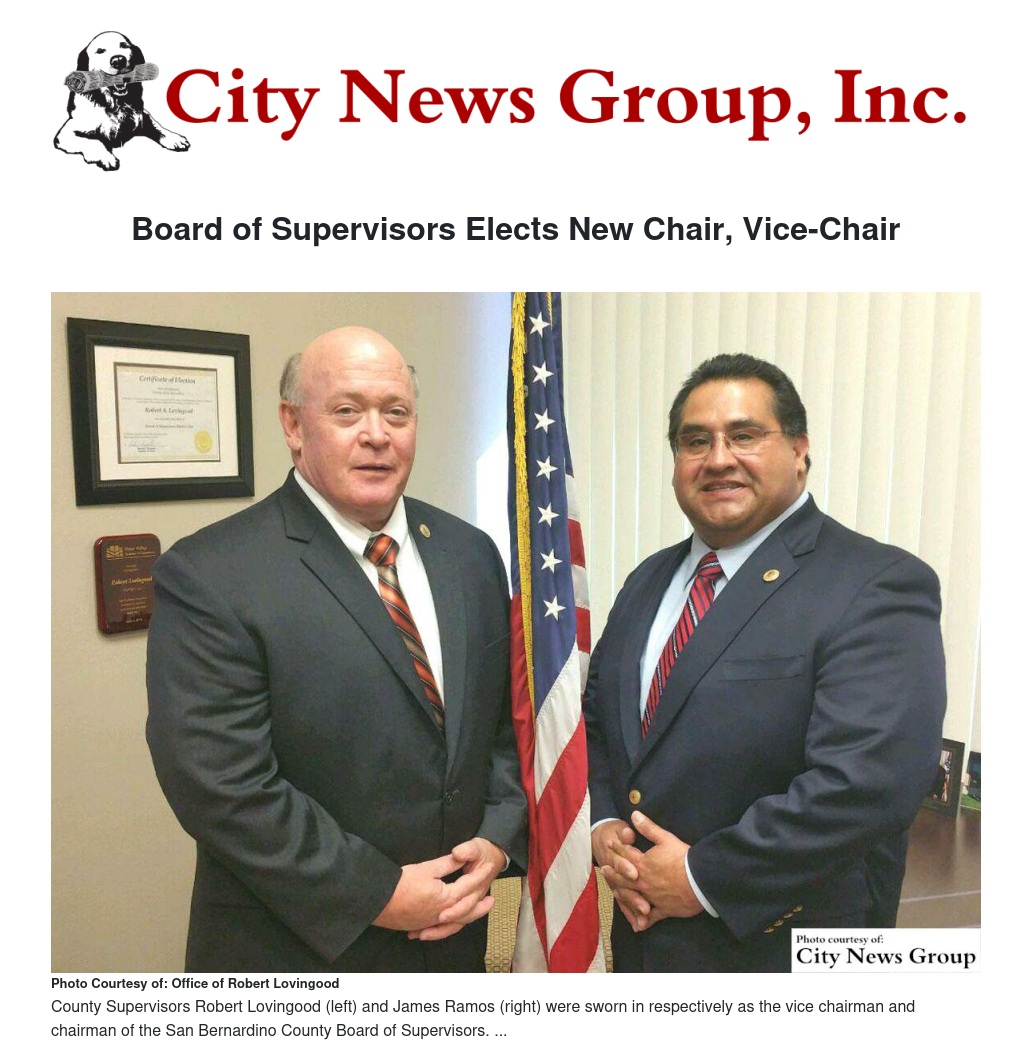 "The Board remains committed to working together as a team for the betterment of our San Bernardino County family, including our many residents, employees, and fellow elected officials," said Ramos. "I look forward to working with our Vice Chairman Robert Lovingood and my colleagues to continue to bring positive change to the County of San Bernardino.”