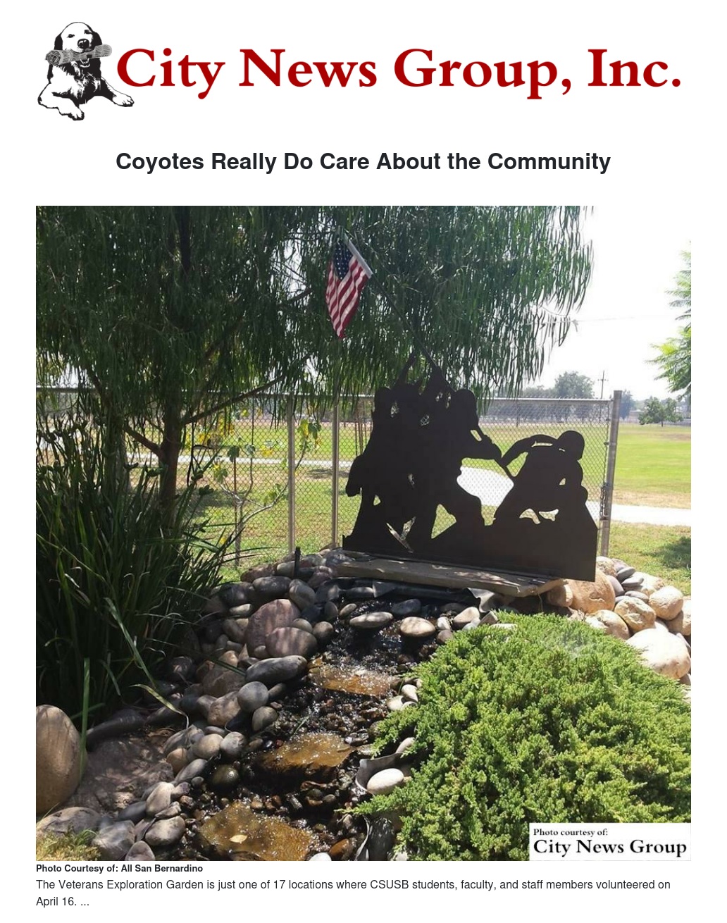 Visit the CSUSB Office of Community Engagement website at http://cup.csusb.edu, or call (909) 537-7483, for more information on Coyote Cares Day and other community projects.