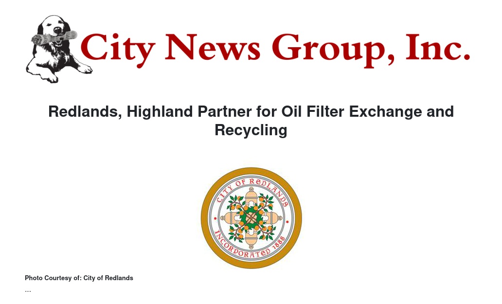 Redlands, Highland Partner for Oil Filter Exchange and Recycling