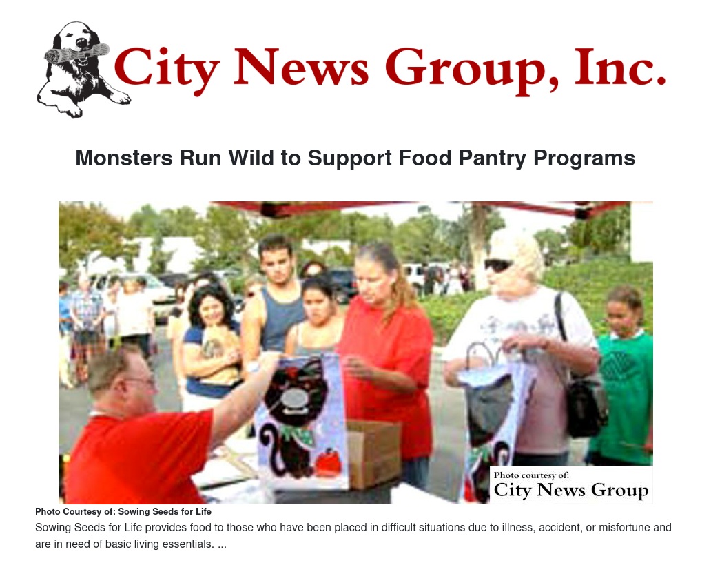You can register online at Active.Com –Sowing Seeds for Life Monster Run/Walk, or call Fran Robertson at 909-392-5777 for more information.
