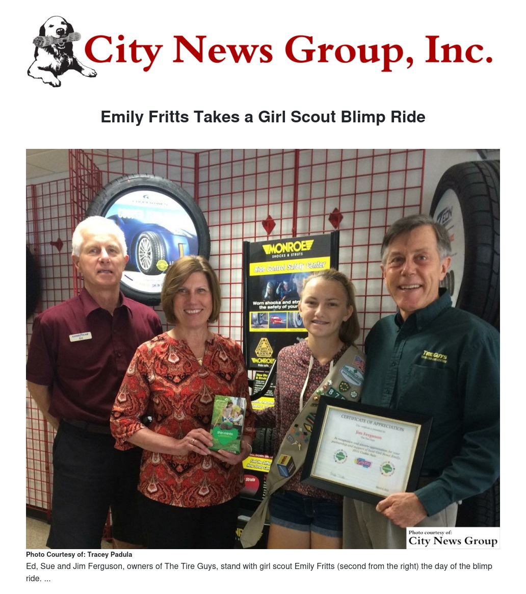 Being a Girl Scout and selling cookies for 10 years, Emily has developed many relationships with local businesses including the Tire Guys.