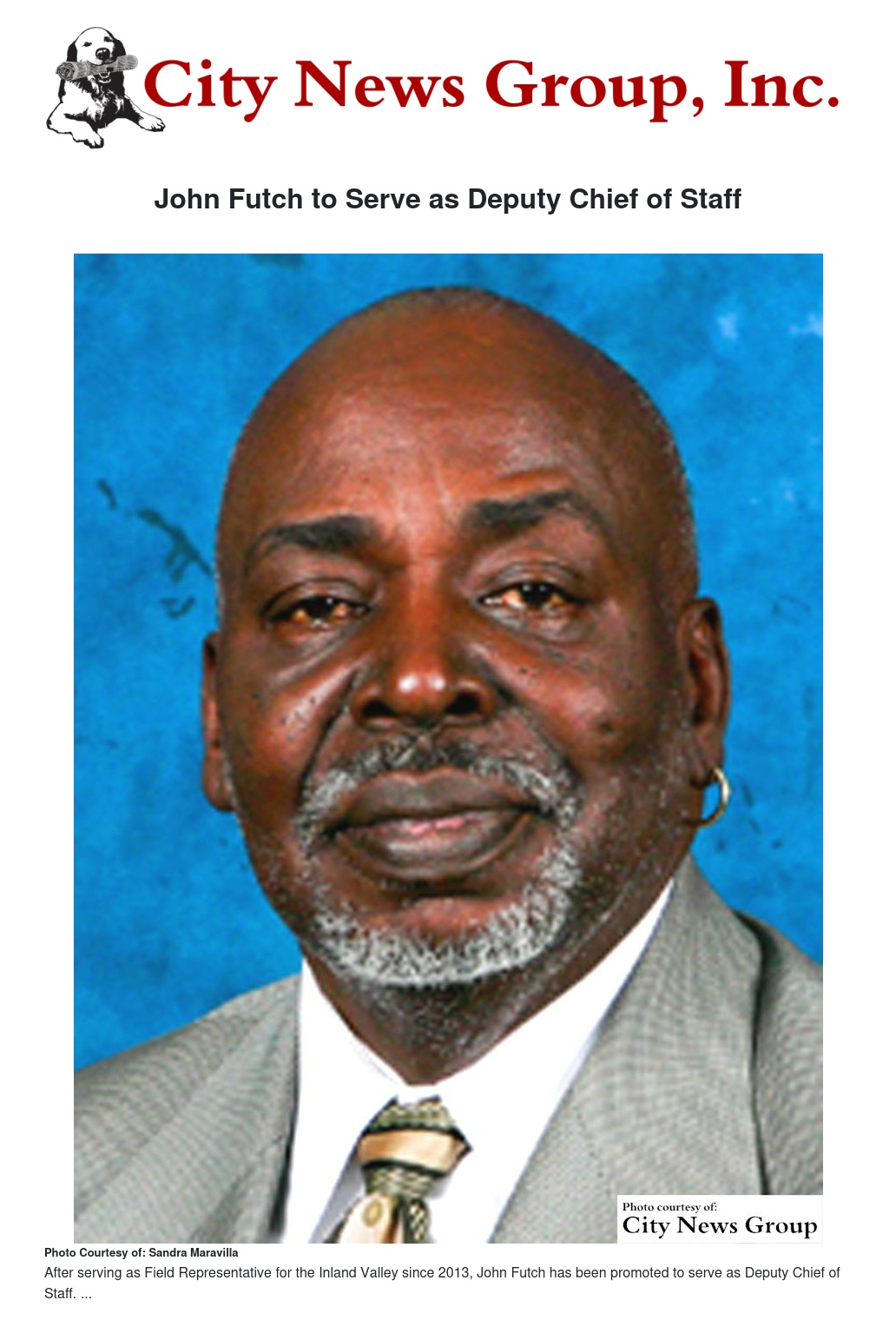 San Bernardino County Chairman James Ramos has promoted John Futch to serve as his new Deputy Chief of Staff. Futch had served as the Field Representative for the Inland Valley since 2013.