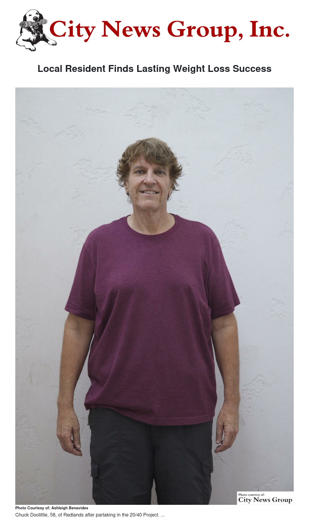 For many people struggling to lose weight, the bathroom scale can become a tyrannical weight-loss coach that keeps them chained to a prison of sorts. On one hand, if the right number appears, it promises glamor, sexiness and a return to youth. However, if the number only yo-yos, it brings little confidence, helplessness, and no hope of escape. This is no longer true for Chuck Doolittle, 58, of Redlands.