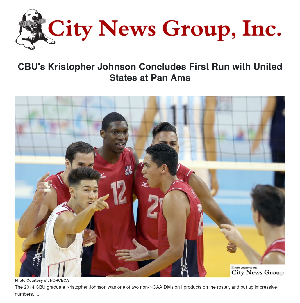 It was not enough for Kristopher Johnson to simply be named to the United State men's volleyball roster heading into the Pan American Games. The California Baptist University alumnus was determined to make an impact in his international debut.