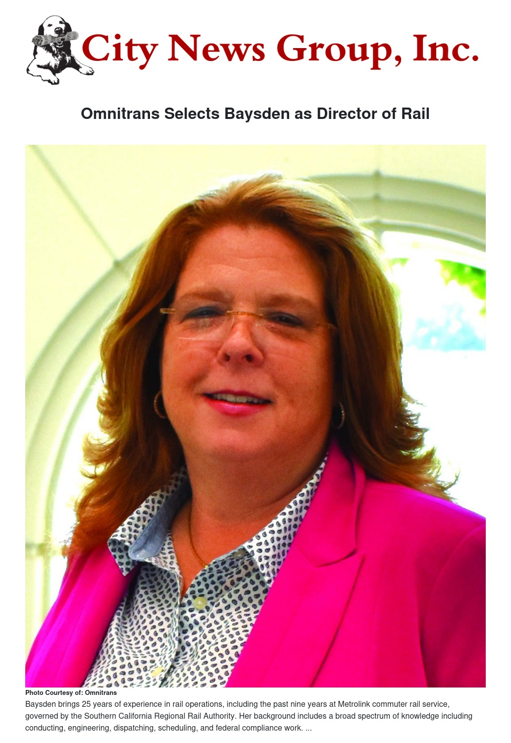 Baysden brings 25 years of experience in rail operations, including the past nine years at Metrolink commuter rail service, governed by the Southern California Regional Rail Authority. Her background includes a broad spectrum of knowledge including conducting, engineering, dispatching, scheduling, and federal compliance work.