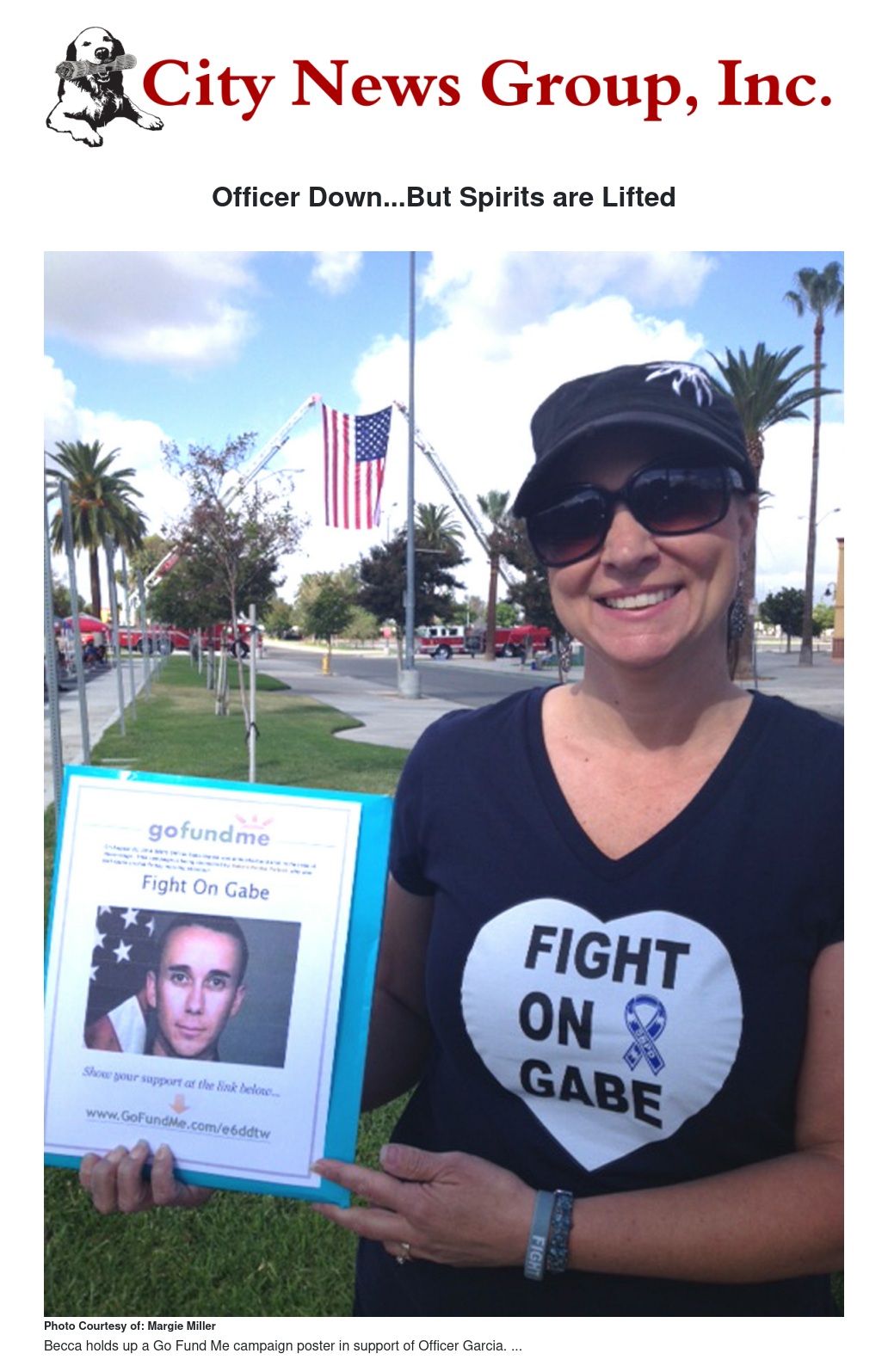 Anyone who would like to donate to Garcia and his family may do so through Becca’s Go Fund Me: Police Officer Ambushed on Duty campaign at http://www.gofundme.com/e6ddtw.