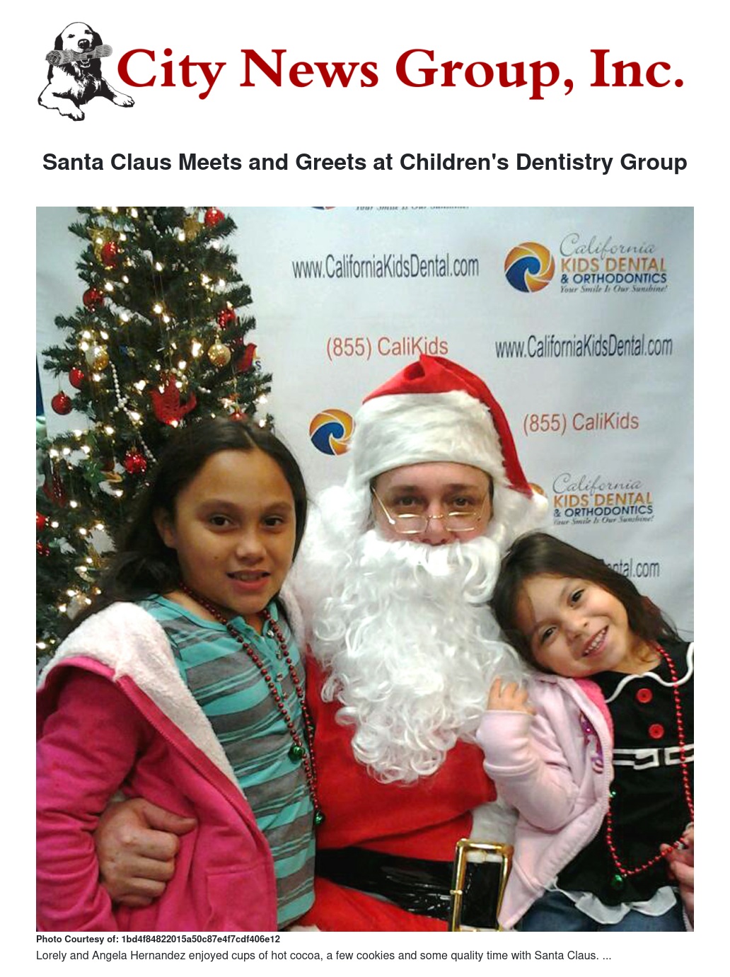 Christmas's rosy-cheeked, big-bellied, jolliest fellow, Ol' St. Nick, was the guest of honor last weekend at California Kids Dental and Orthodontics.