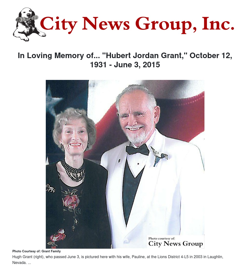In Loving Memory of... "Hubert Jordan Grant," October 12, 1931 - June 3, 2015