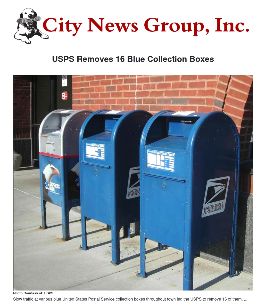 USPS Removes 16 Blue Collection Boxes