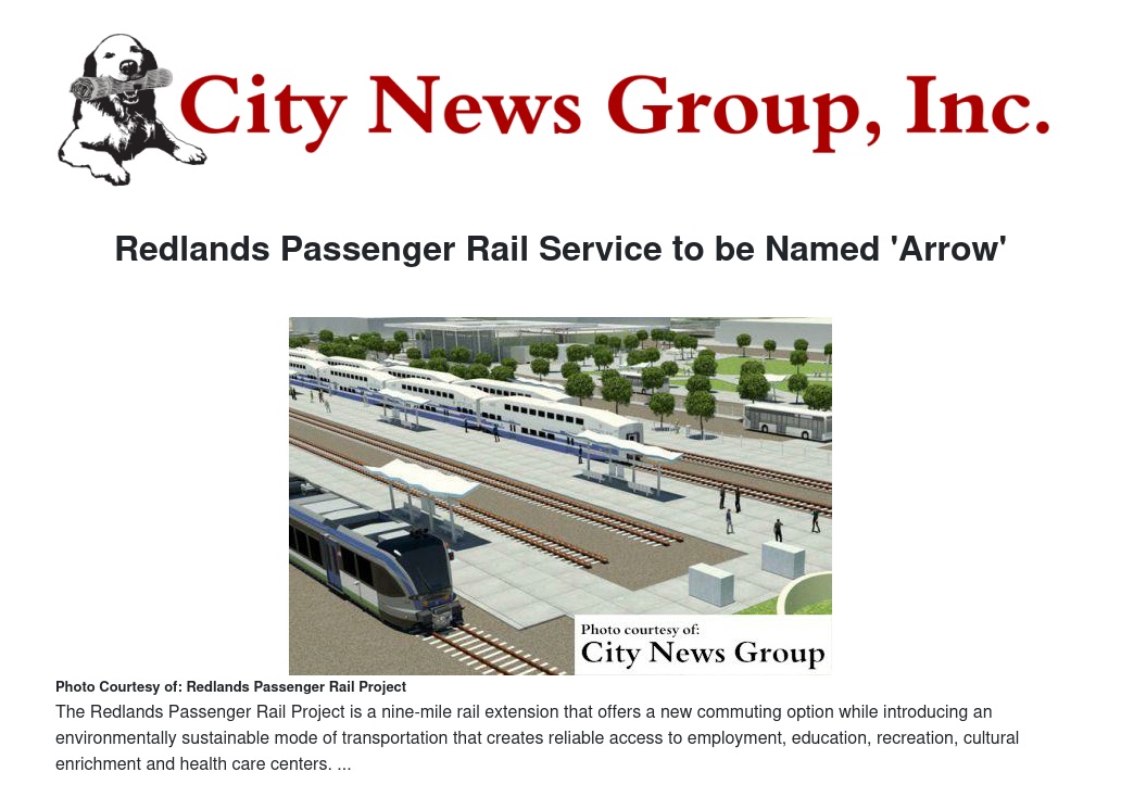 Redlands Passenger Rail Service to be Named 'Arrow'
