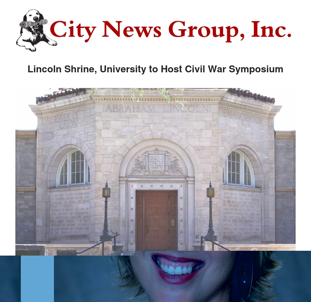The two-day event will take place Saturday, Sept. 21, and Sunday, Sept. 22, at the University of Redlands Casa Loma Room, with a special reception and dinner on the evening of Sept. 21 at the Lincoln Memorial Shrine and A.K. Smiley Public Library in Redlands. Founded in 1932, the Lincoln Memorial Shrine is the only museum in the West dedicated to Abraham Lincoln and the Civil War.