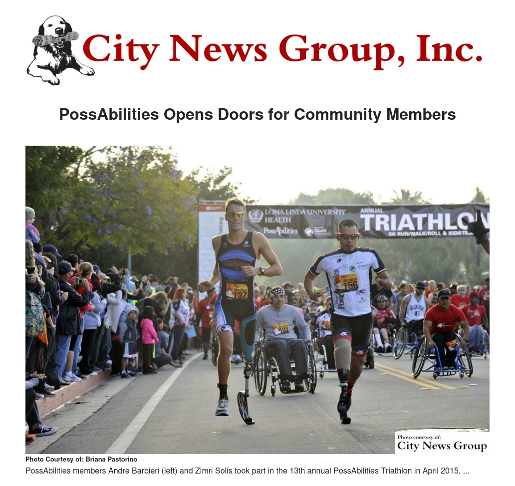 Other events held by PossAbilities include the annual triathlon, which was held for the 14th year in April at the Loma Linda University Health Drayson Center.
