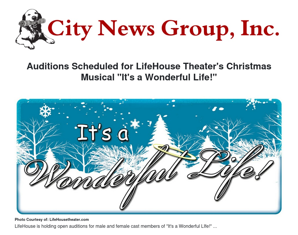Auditions Scheduled for LifeHouse Theater's Christmas Musical "It's a Wonderful Life!"