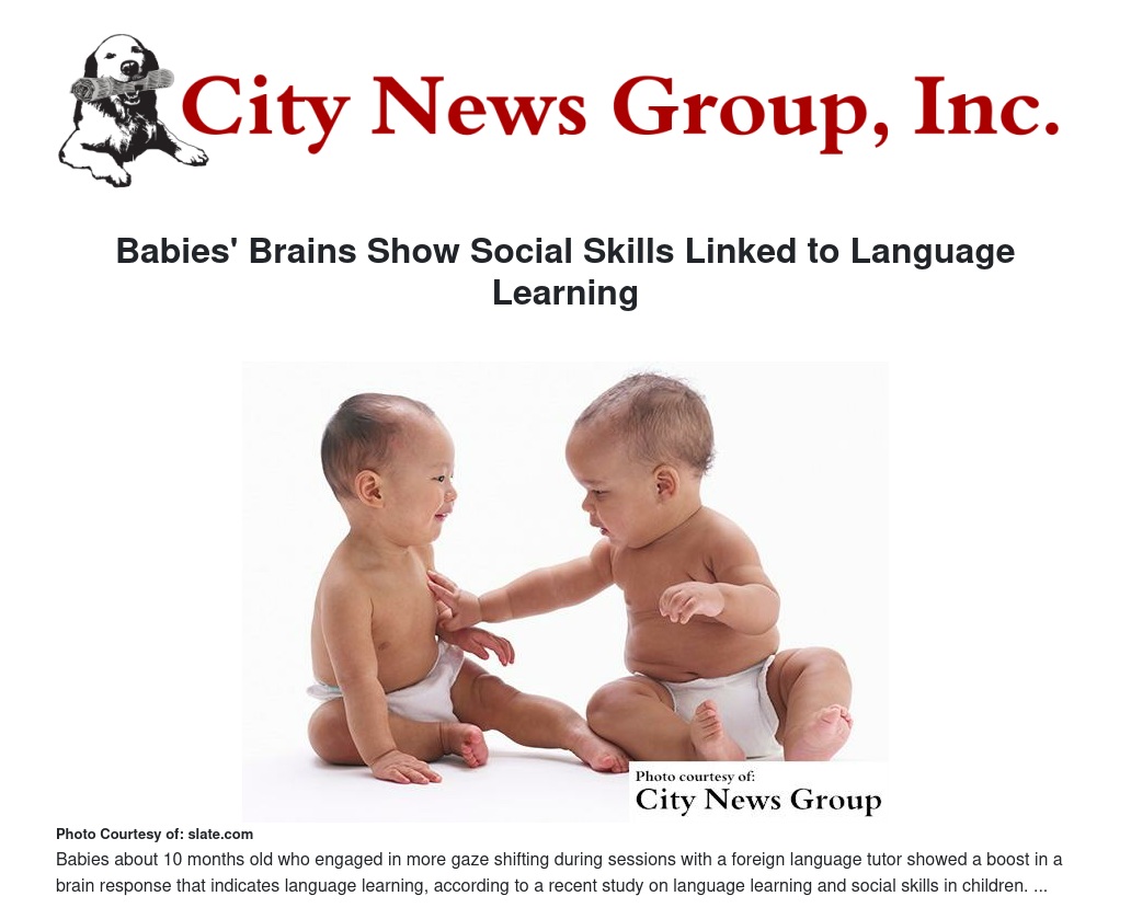 Babies about 10 months old who engaged in more gaze shifting during sessions with a foreign language tutor showed a boost in a brain response that indicates language learning, according to the study, which is published in the current issue of Developmental Neuropsychology.