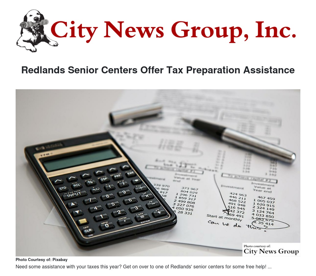 Free tax preparation assistance for low- and middle-income taxpayers, especially those ages 60 and older, is available at Redlands’ two senior centers.