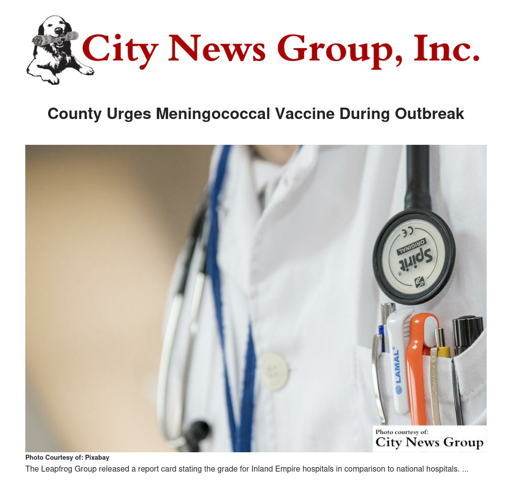 SAN BERNARDINO >> San Bernardino County’s Health Officer Dr. Maxwell Ohikhuare is urging people to get the meningococcal vaccine who are at higher risk of contracting the disease. Those in high risk include men who have sex with men, as well as HIV-infected persons.